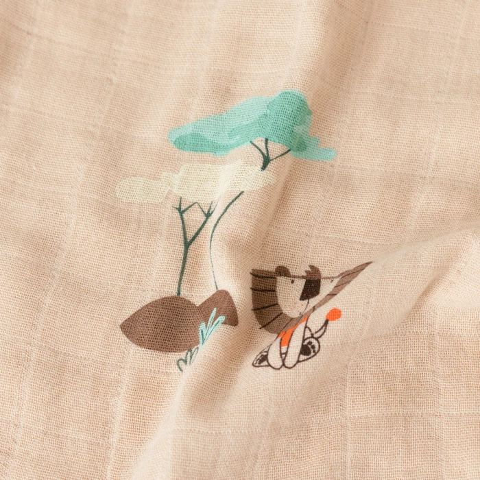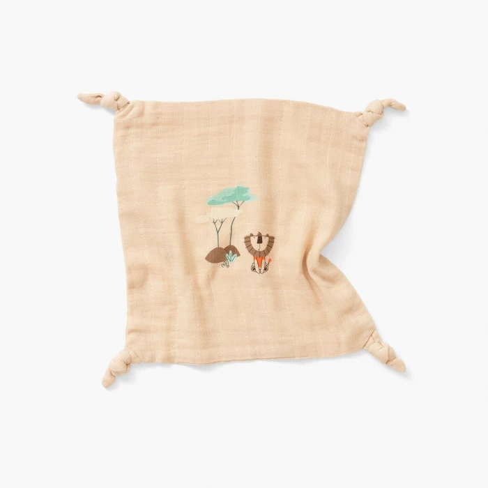 Complice des premiers instants de bébé, le doudou plat Safari vous accompagne partout pour réconforter les tout-petits. Confectionné en mousseline de coton biologique, une matière respectueuse de la peau et de la planète, cet accessoire revêt un coloris beige inspiré de la savane. Un doudou qui déborde de tendresse grâce à son adorable motif de petit lion, pour un cadeau de naissance qui fait plaisir à coup sûr.