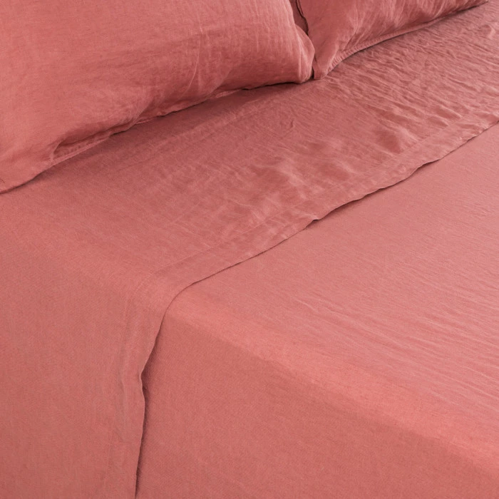 Le drap de lit uni Songe est en pur lin lavé des Flandres, 165 g/m². D’un naturel absorbant et aéré, le lin a pour atout de réguler le corps.