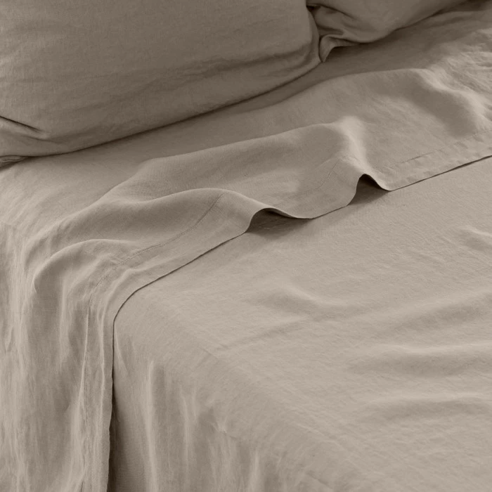 Le drap de lit uni Songe est en pur lin lavé des Flandres, 165 g/m². D’un naturel absorbant et aéré, le lin a pour atout de réguler le corps.