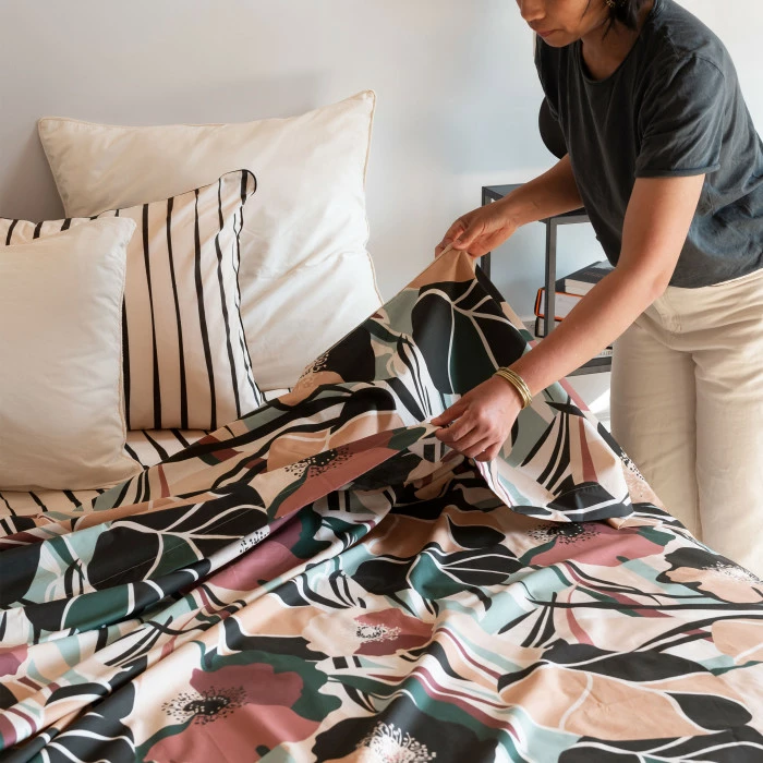 Réinventez votre intérieur avec le drap de lit Gisèle et son magnifique effet floral et végétal combiné. Créez les mix and matchs de vos rêves grâce à sa confection à l’italienne !