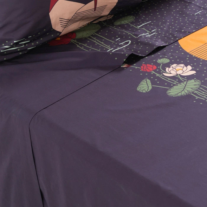 Profitez d’un décor aux accents japonisants, avec ce drap de lit confectionné à l’italienne.