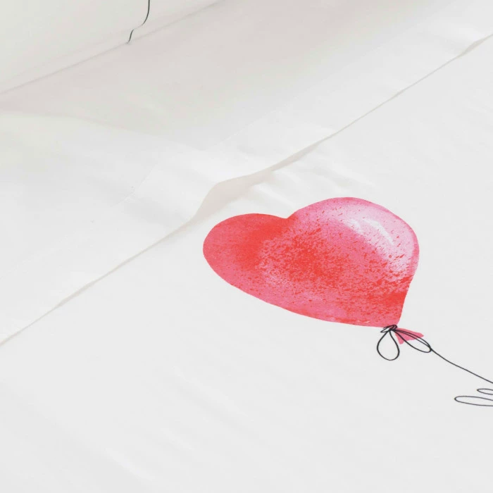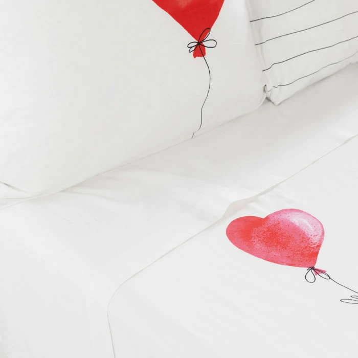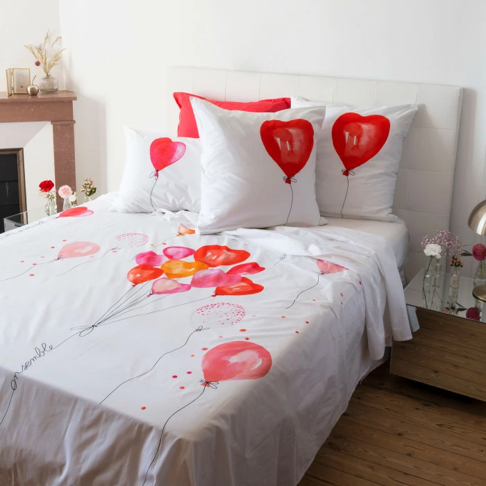 | Motif | Motif placé d'une envolée de ballons traité à l'aquarelle et dans les tons de rose, rouge et orange |