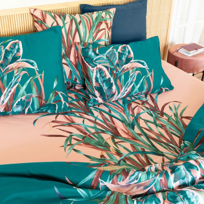 Faites vibrer votre décoration avec le drap housse Calathéa et son incroyable décor végétal. Inspiré de la flore sud-américaine, ce linge de lit exotique et chic dépeint un feuillage haute couture très ornemental, naturellement riche en contrastes de couleurs et en relief pour un effet 3D puissant. Laissez-vous bercer par cette ambiance venue d’ailleurs, la promesse de nuits teintées d’exotisme.