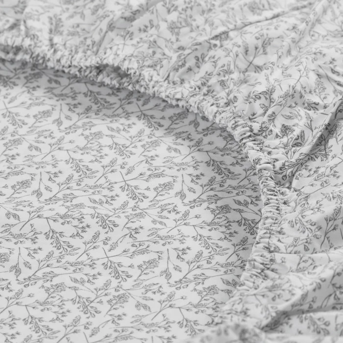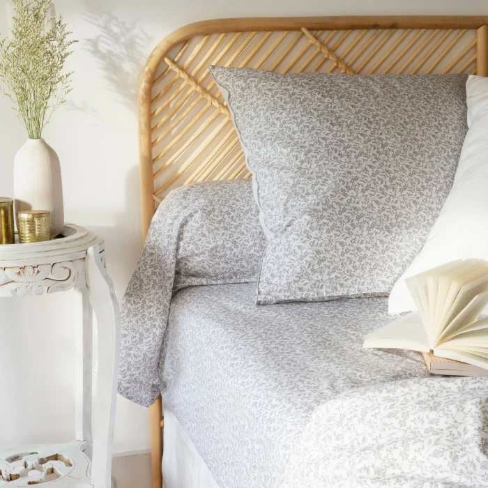 Ce linge de lit est une vraie composition florale mêlant aquarelle et encre argentée.