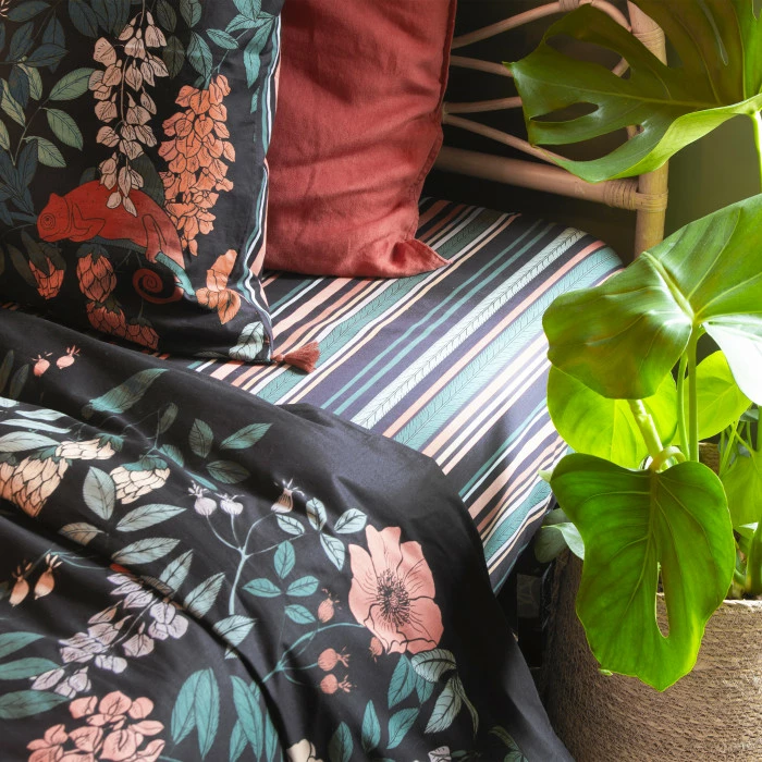 Le drap housse Exotica sublime la chambre à coucher grâce à l’originalité de son motif.