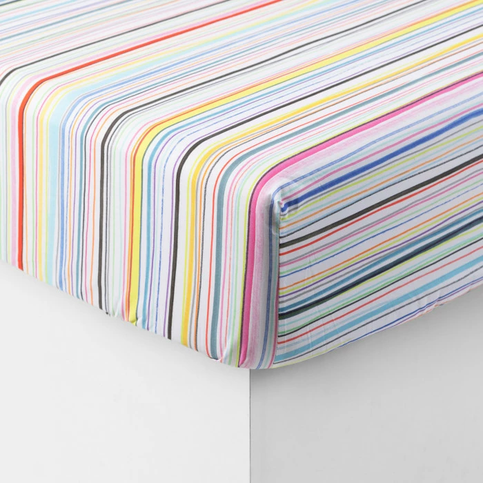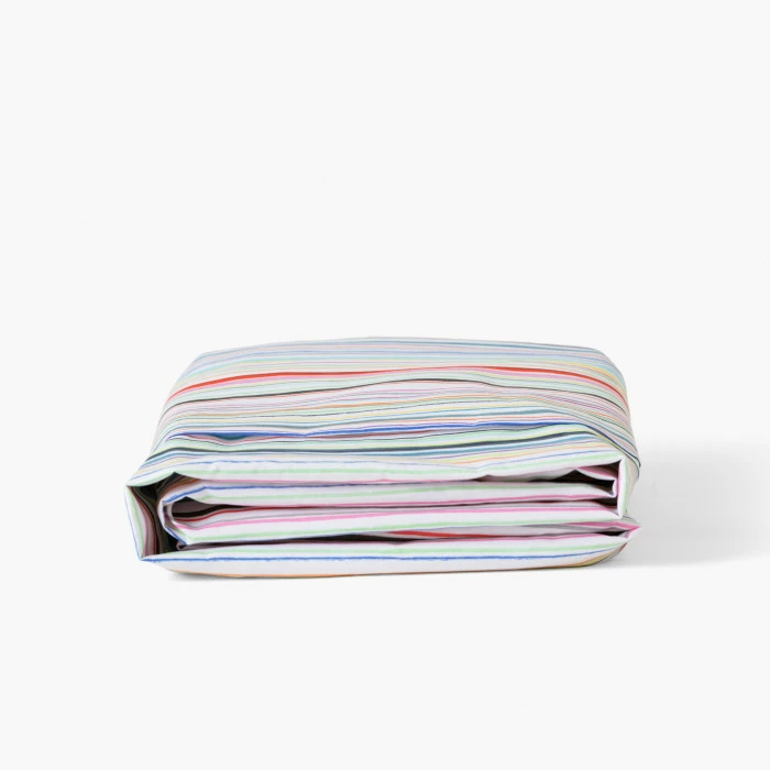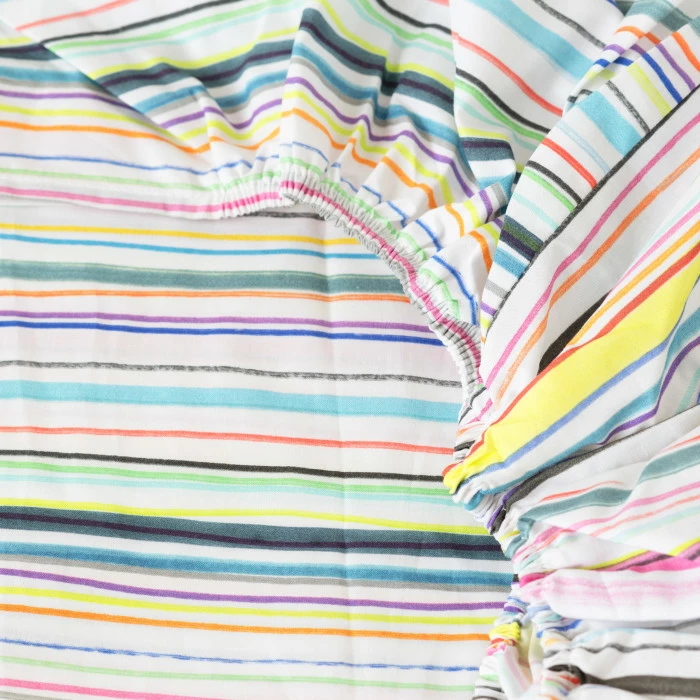 Ce linge de lit multicolore arbore un magnifique motif placé de rayures bayadères.