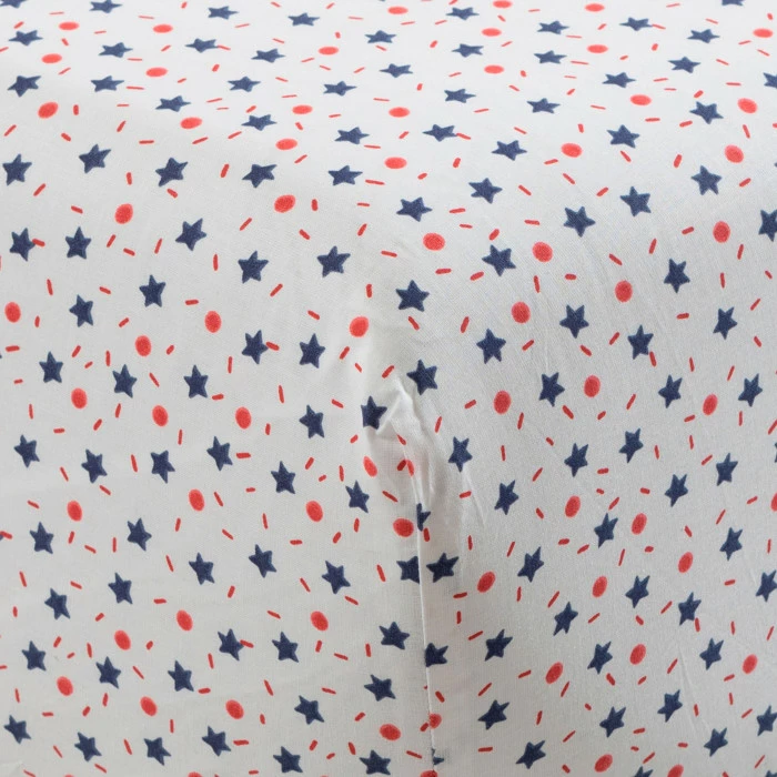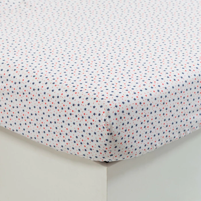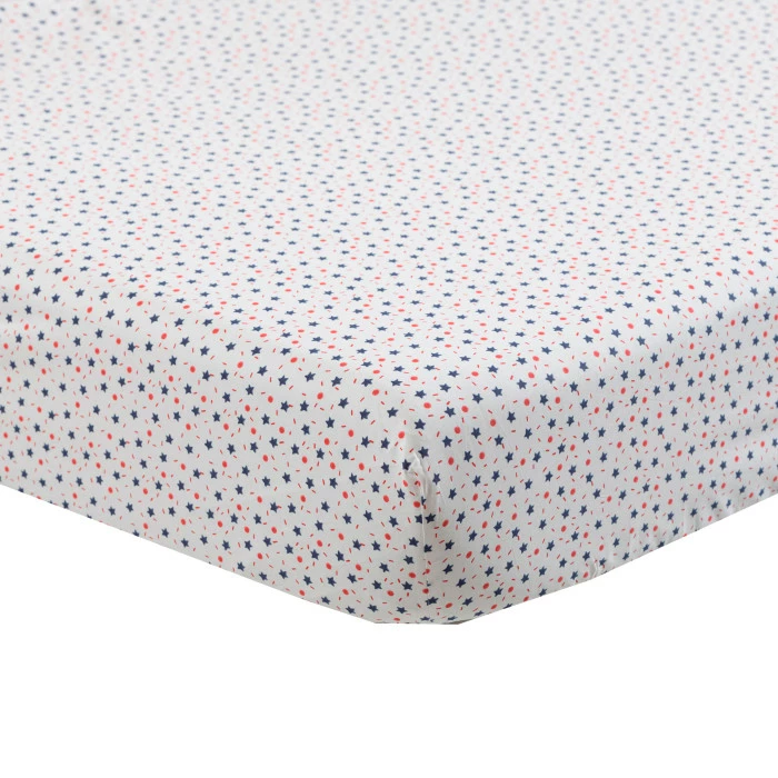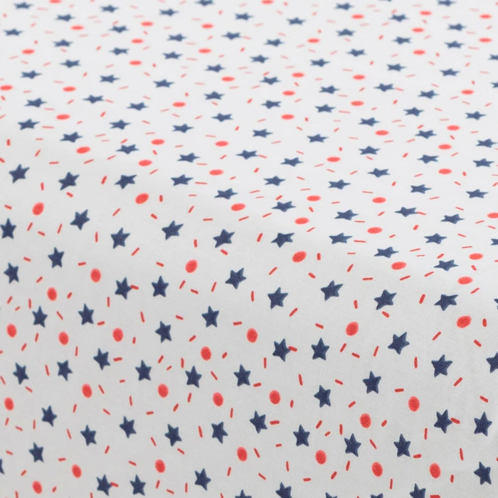 Craquez pour la collection Ptitchic et son nouveau concept proche de la personnalisation. Fabriqué en coton biologique, ce drap housse revêt un joli imprimé étoilé aux coloris bleu blanc rouge dans la tendance frenchy. Les enfants prendront plaisir à matcher ce drap housse avec les autres éléments de la parure de lit : housse de couette et taies d’oreillers aux motifs de chat et renard.