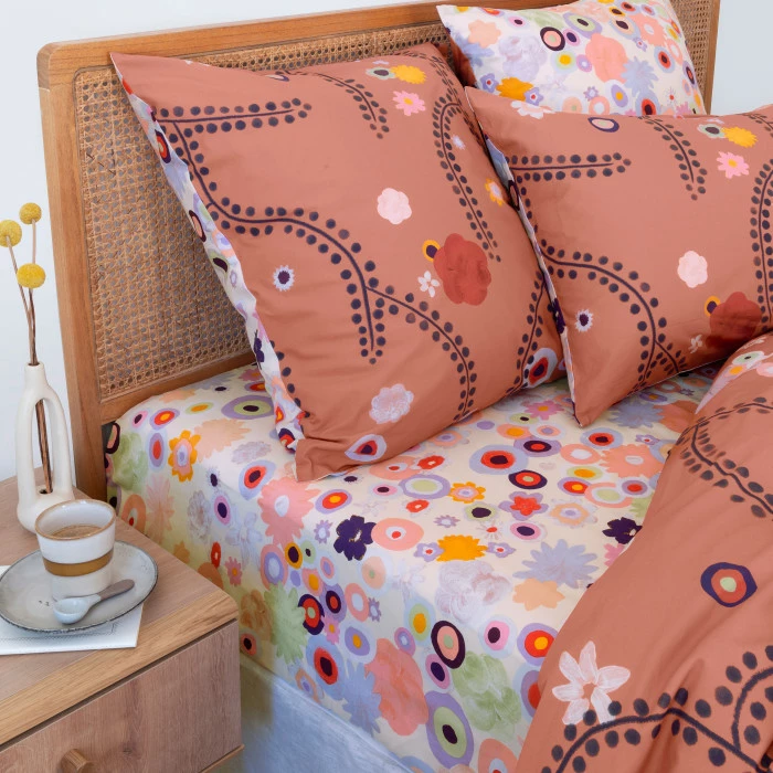 Ce drap housse arbore des motifs fleuris vintage pour venir compléter la parure de lit.