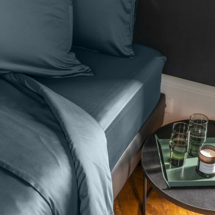Un linge de lit fabriqué en satin de coton au toucher soyeux et à la douceur incomparable.