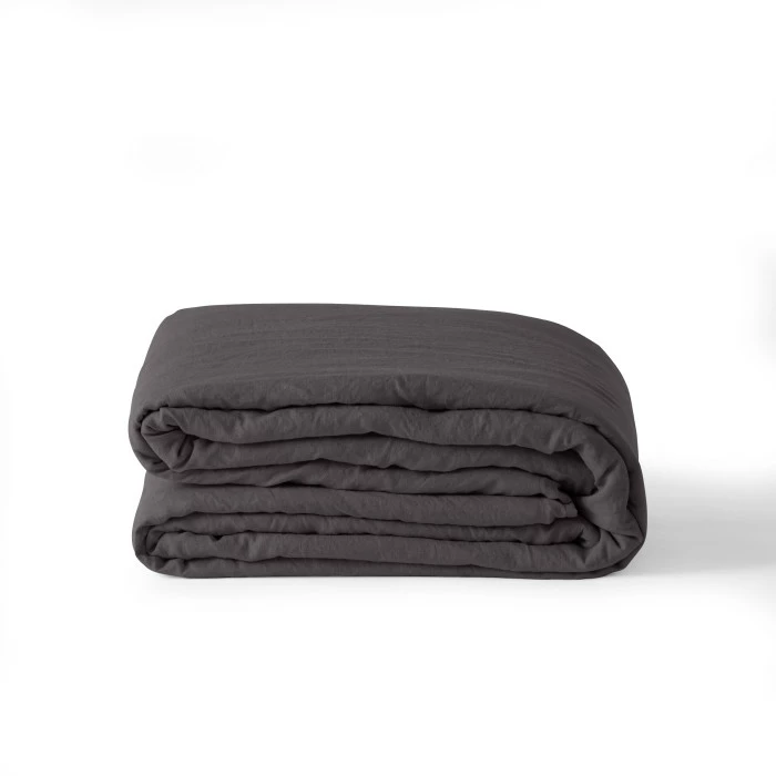 Une housse de couette unie en lin et coton lavé pour un effet respirant et thermorégulateur.