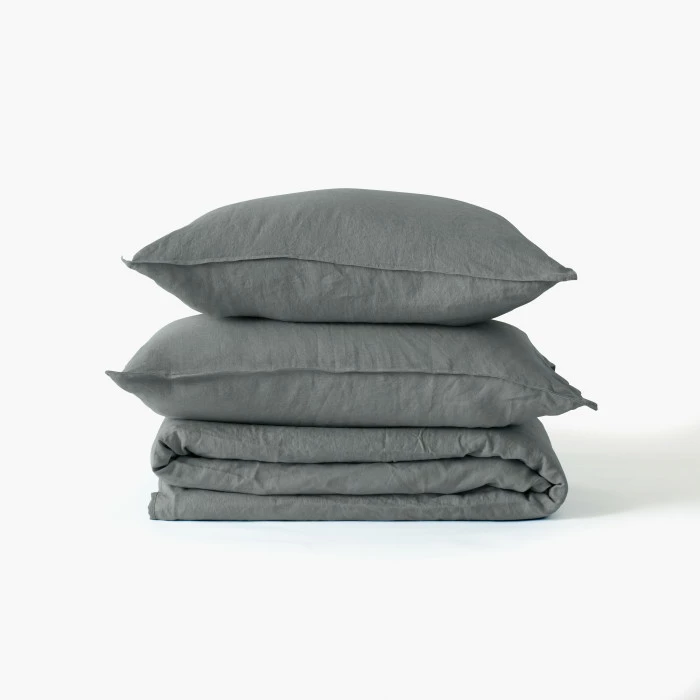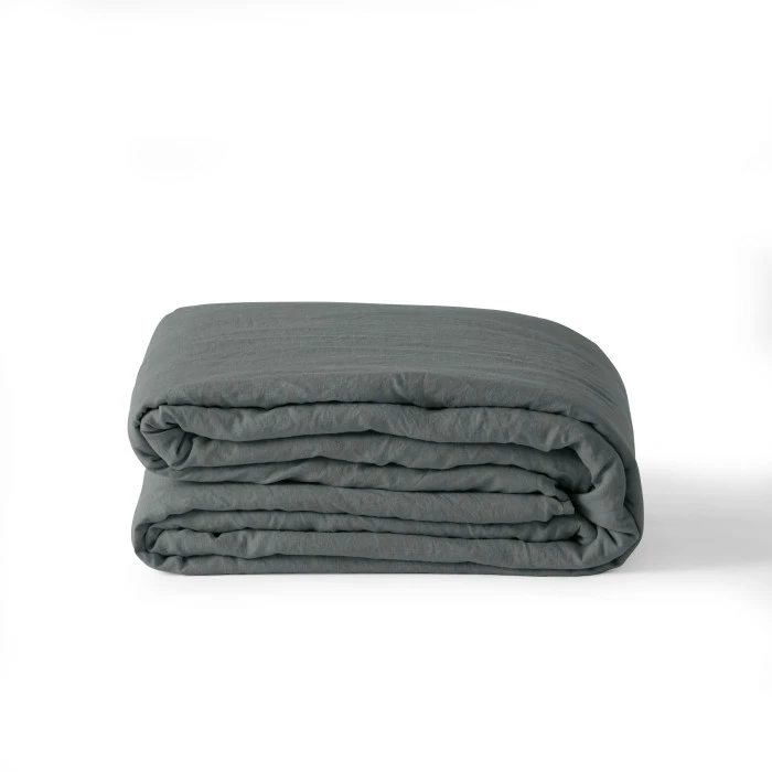 Une housse de couette unie en lin et coton lavé pour un effet respirant et thermorégulateur.