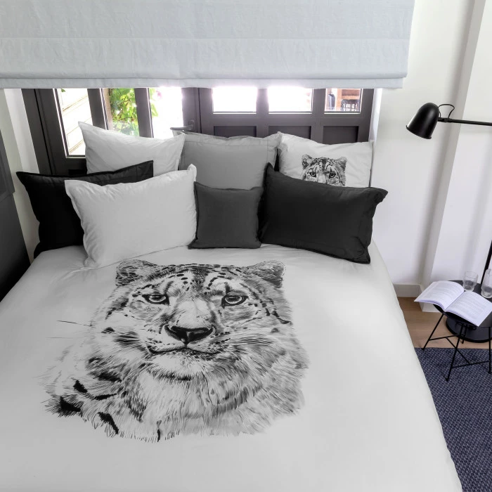 Intemporelle|cette housse de couette plaira à toutes les générations ! Adultes, adolescents ou enfants apprécieront sa panthère des neiges et ses montagnes hivernales.