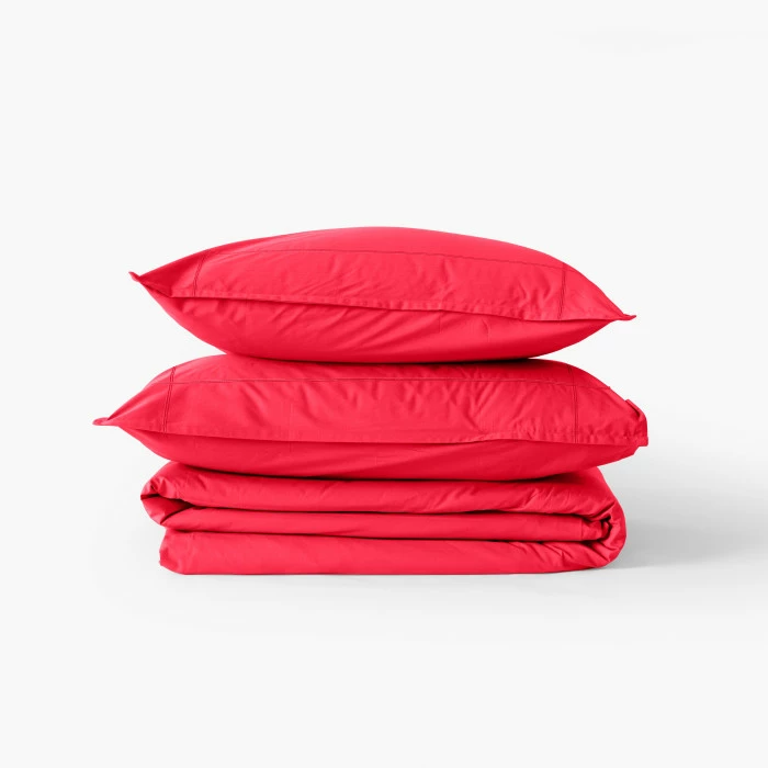 Une housse de couette unie en percale de coton avec un bel aspect mat.