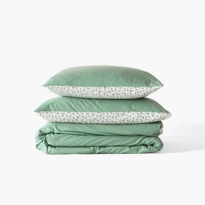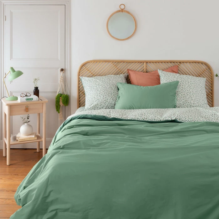 Faites entrer la nature dans votre intérieur avec notre collection Neo et son coloris thym végétal. Le confort de la percale de coton associé à de petits imprimés pour une chambre tendance.