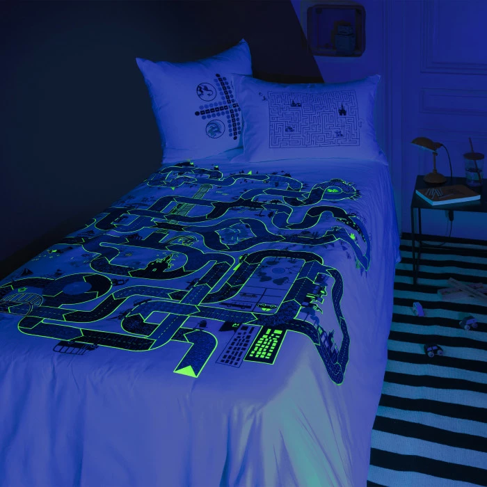 Les éléments phosphorescents se rechargent durant la journée avec la lumière du jour.<a href= »https://www.youtube.com/watch?v=6XQwA1wg7q4″ target= »_blank »> UNE EXPERIENCE INEDITE AVEC JOCAMINIUne housse de couette au design innovant pour des moments de complicité avec vos enfants.JE DECOUVRE LA VIDEO >