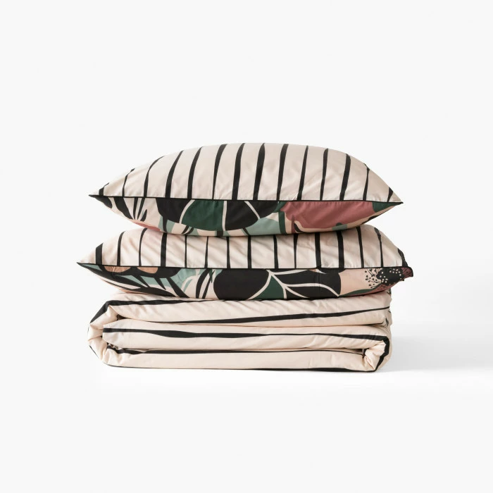 Réinventez votre intérieur avec la housse de couette Gisèle et son double décor qui mêle motifs floraux et maxi rayures peintes à main levée. Une parure résolument urbaine qui séduira tous les âges !