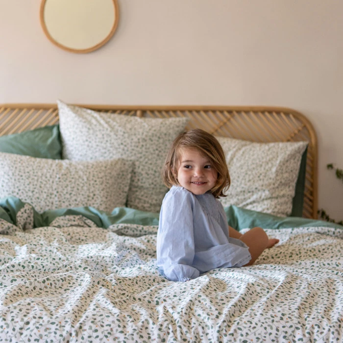 Faites entrer la nature dans votre intérieur avec notre collection Neo et son coloris thym végétal. Le confort de la percale de coton associé à de petits imprimés pour une chambre tendance.