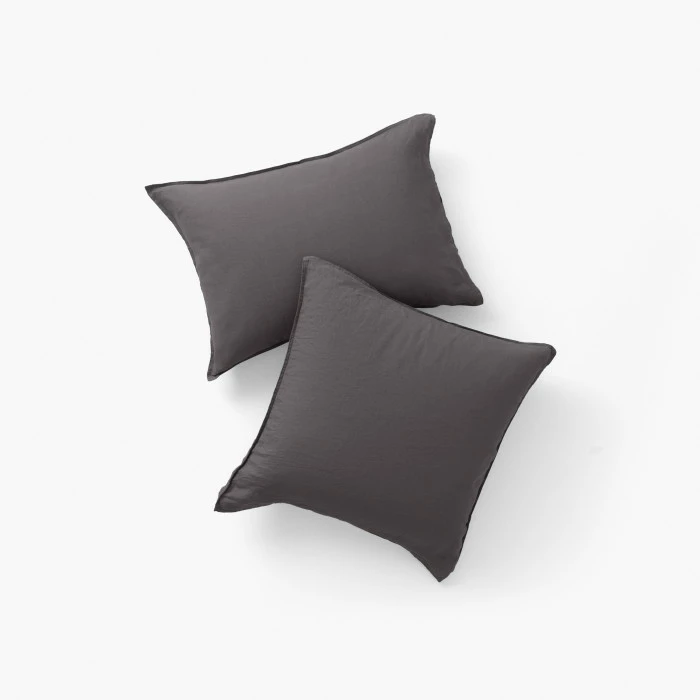 La taie d’oreiller Songe charbon en pur lin lavé des Flandres (165 g/m²) accompagnera vos nuits et vous garantira un sommeil de qualité. D’un naturel absorbant et aéré, le lin est une matière qui possède des propriétés thermorégulatrices. C’est un très bon isolant en hiver alors qu’il respire et apporte de la fraîcheur en été. Pensez à associer les taies d’oreiller unies avec nos parures de lit fantaisies pour créer des mix & match réussis.