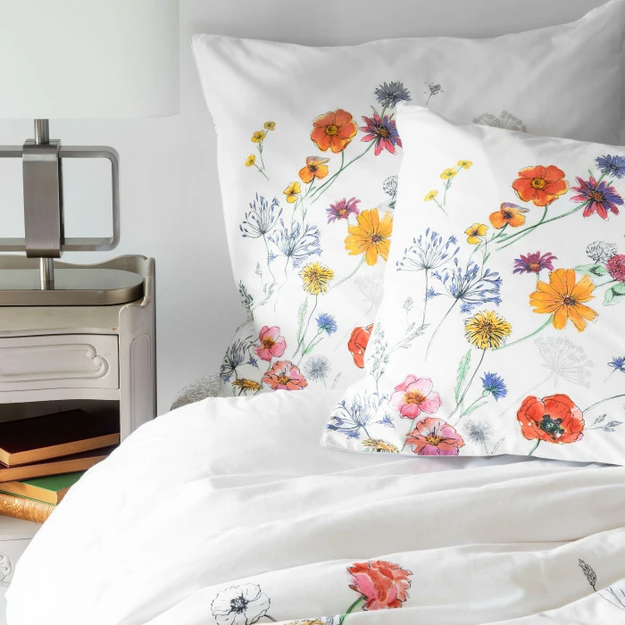 Courez librement au milieu des fleurs des champs avec la collection Eloges ! Offrant un double décor romantique, cette taie d’oreiller en percale de coton présente une magnifique envolée de fleurs colorées d’un côté et un micro-motif de petites fleurs plus discrètes de l’autre. Vous apprécierez son esprit chic et bohème, ainsi que son élégant passepoil argenté. Laissez-vous emporter par cette ambiance bucolique !