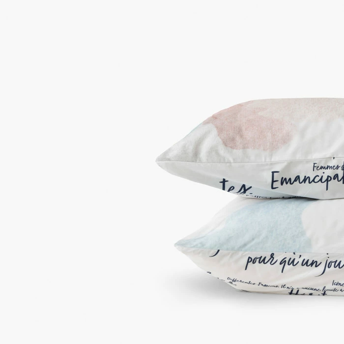 Rappelez-vous les droits des femmes, leur liberté et leurs combats à travers la collection Simones. Réversible, cette taie d’oreiller présente un magnifique dessin aquarellé d’un côté et des mots engagés de l’autre pour varier les styles de décoration. Découvrez les autres éléments de la parure de lit Simones qui met en lumière des personnages emblématiques et inoubliables. De quoi afficher fièrement votre féminisme !