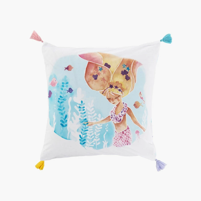 | Particularité | Pompons coloris lagon, jaune, rose et mauve aux quatre coins |
