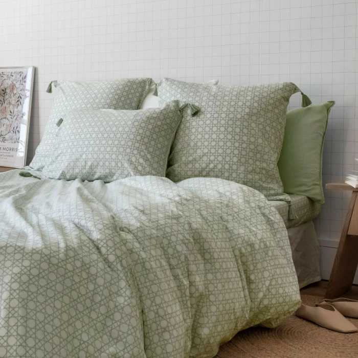| Motif | Une face motif placé de succulentes traitées à l'aquarelle – Une face motif all-over de cannage vert |