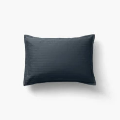 Taie D’oreiller Rectangulaire Satin De Coton Jacquard Pois Et Rayures Prestige Bleu Nuit