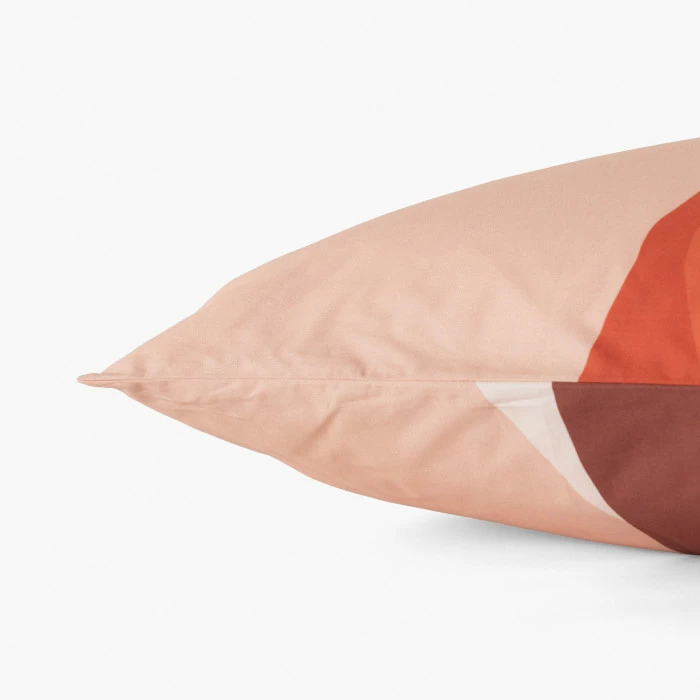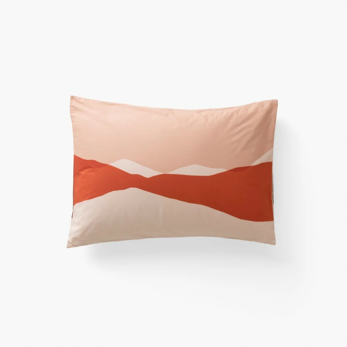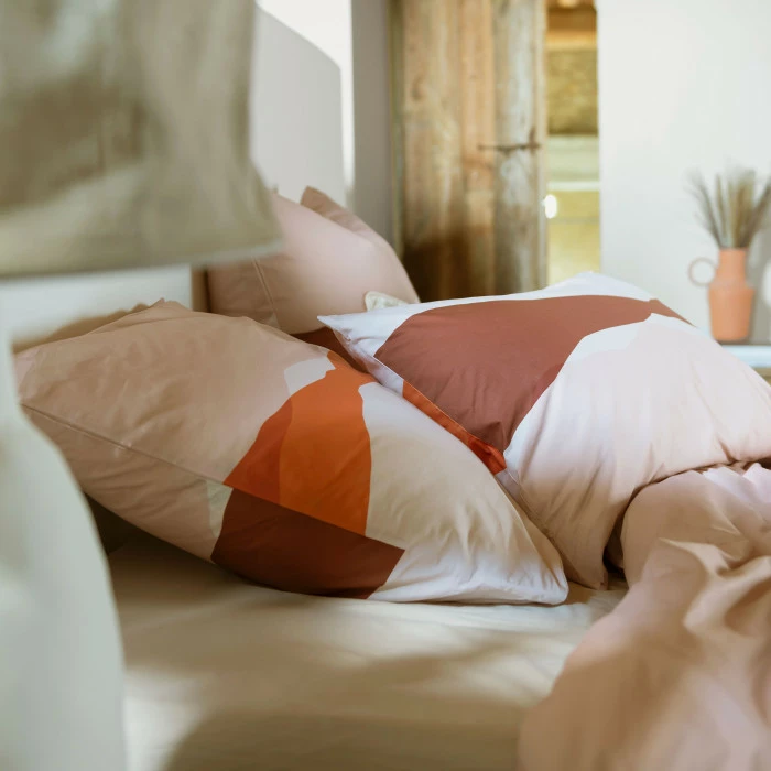 Les nostalgiques de l’été vont adorer la taie d’oreiller réversible Safi et son décor inspiré des couchés de soleil marocains. Une parure de lit bohème qui réchauffe la chambre.