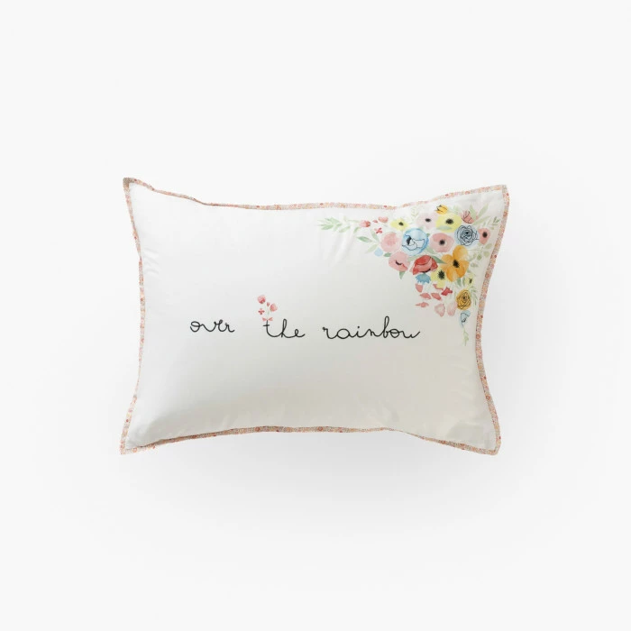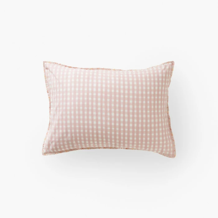 Destinée aux enfants comme aux adolescents, la collection Rêve d’or plonge la chambre dans un style rétro-romantique. Faites fondre le cœur des plus jeunes avec cette taie d’oreiller au double décor poétique. D’un côté, un joli dessin fait d’aquarelle et de crayon noir. De l’autre, un imprimé vichy couleur dragée. Un linge de lit confectionné en coton biologique, une matière durable et responsable.