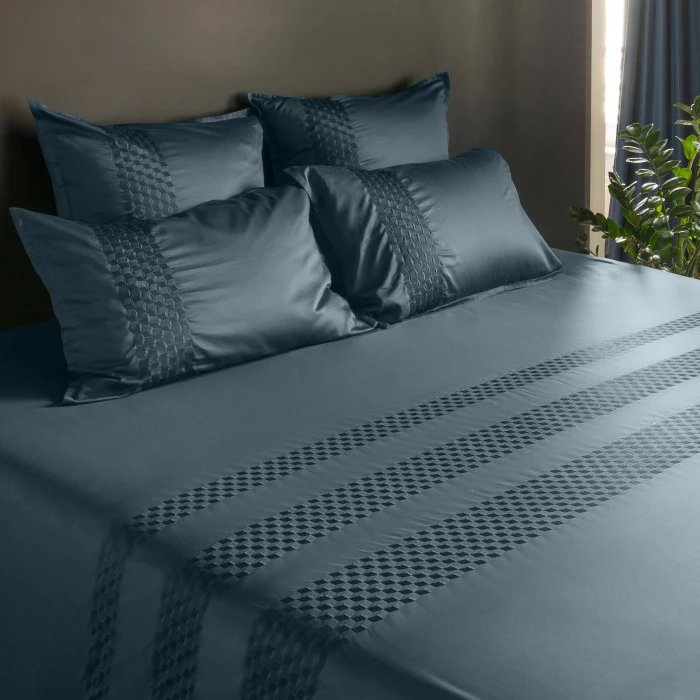 Un linge de lit fabriqué en satin de coton au toucher soyeux et à la douceur incomparable.