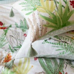 Taie D’oreiller Carrée Coton Et Lin Imprimée Végétale Java Grège